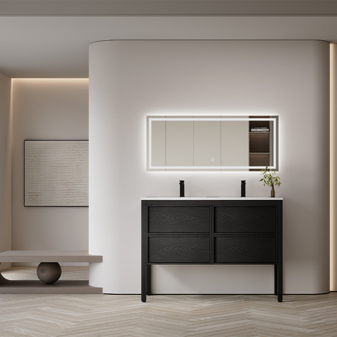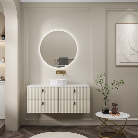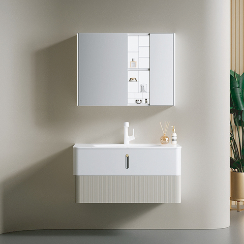 YIDA Modern otel All-In-One şık çift katmanlı kaya kurulu banyo Vanity şık duvara monte MDF banyo dolabı