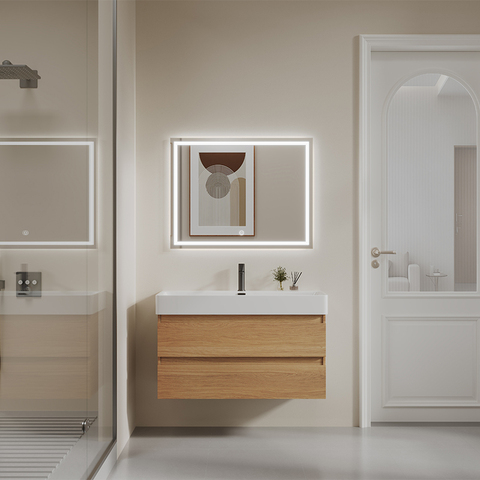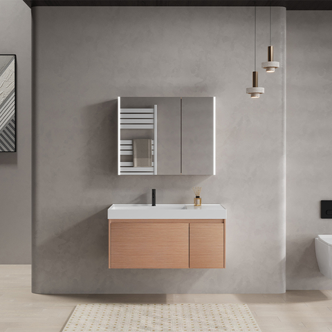 Yida'nın yeni stil duvar-hung Vanity Led aynalı dolap su geçirmez kontrplak karkas yüzer banyo banyo lavabosu seramik lavabo ile
