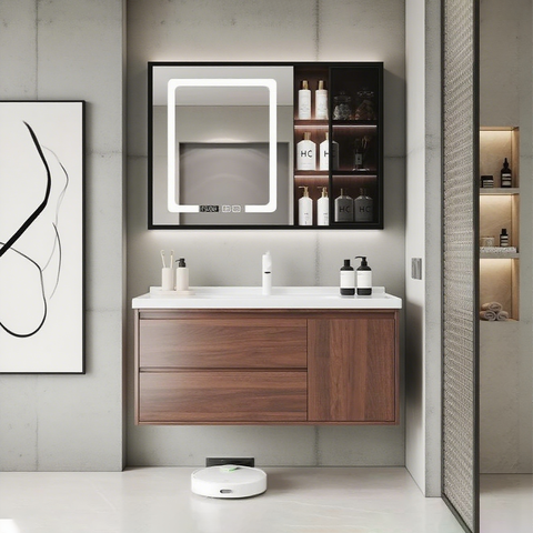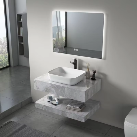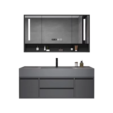 YIDA Modern otel All-In-One duvara monte banyo dolabı çift katmanlı kaya kurulu banyo Vanity